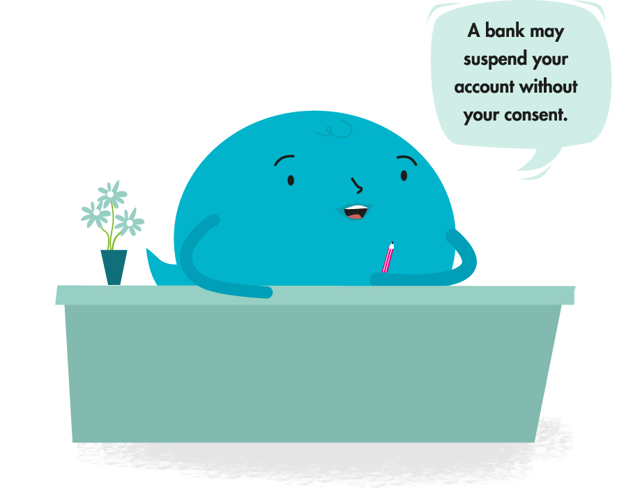 A bank’s powers to suspend an account are set out in its standard terms and conditions (as well as in the Code of Banking Practice, which specifies minimum standards of good banking practice for New Zealand banks). You can view these online or at your bank.