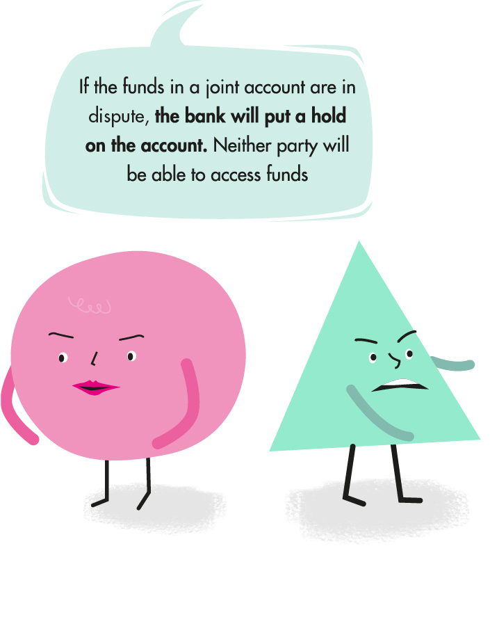 If the relationship has broken down irrevocably, the account holders need to decide what to do with the shared funds or debt and the future of the account. Try to reach an agreement on this and advise the bank. If no agreement is possible, contact the bank as soon as possible. It will offer advice on the future operation of the account. One possibility, if all account holders agree, is to allow regular automatic payments to continue, but to stop any other access until account holders reach a final agreement.